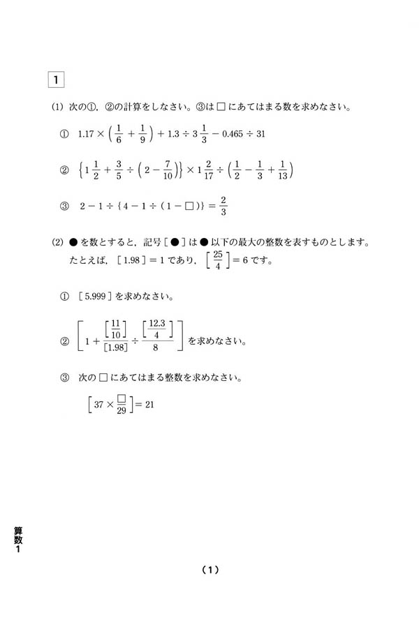 平成27年度入試過去問題 前期(算数 問題)(1ページ目)|高槻中学校の入試過去問