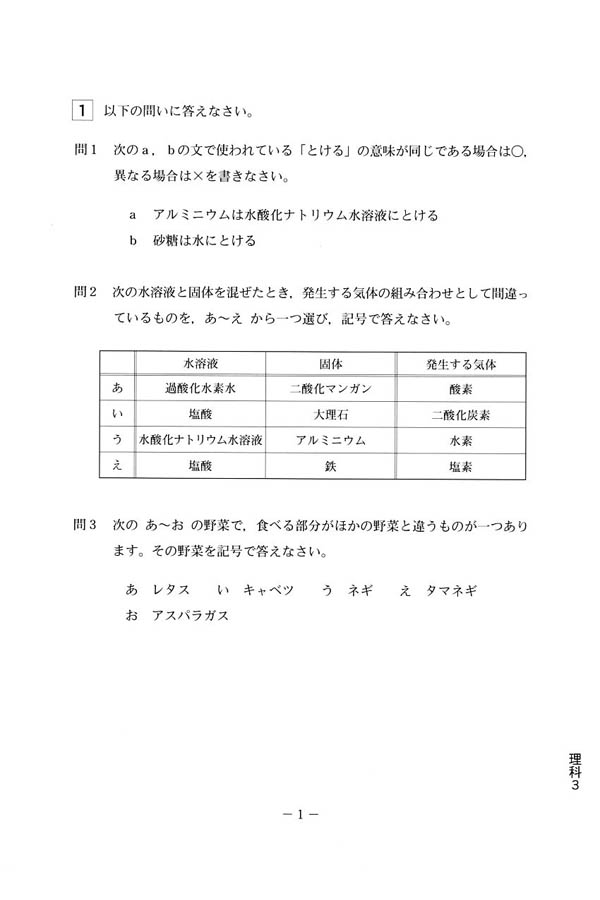 平成27年度入試過去問題 後期(理科 問題)(1ページ目)|高槻中学校の入試過去問