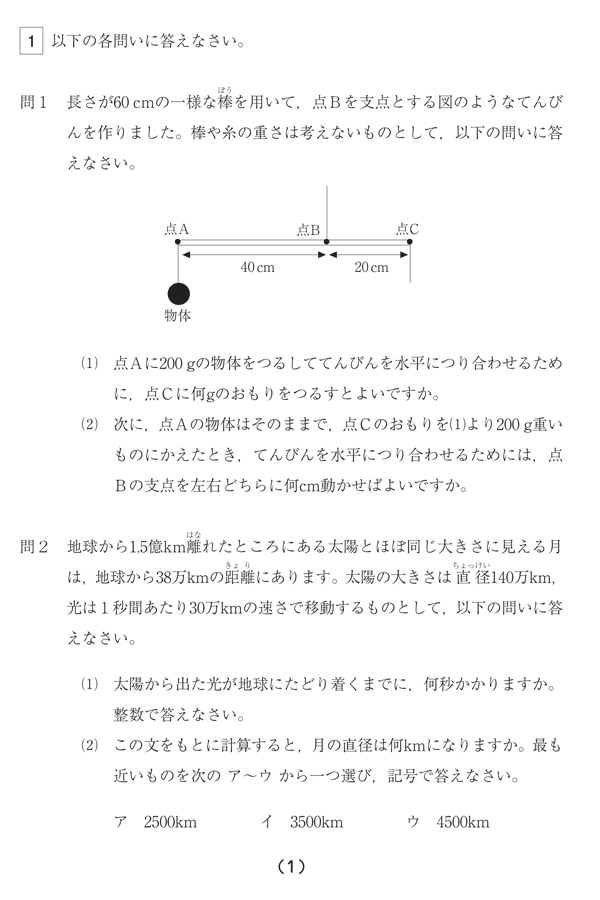 平成29年度入試過去問題 A日程(理科 問題)(1ページ目)|高槻中学校の入試過去問
