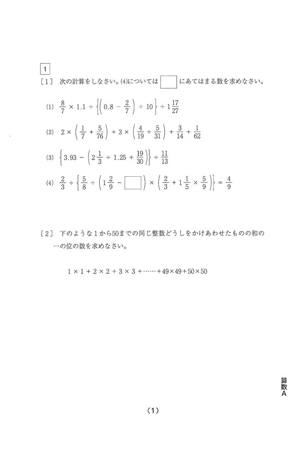 2020年度入試過去問題 A日程、英語選択型(算数 問題)(1ページ目)|高槻中学校の入試過去問