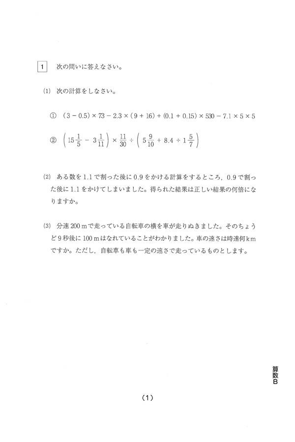 入試過去問(問題)(1ページ目)|高槻中学校の入試過去問