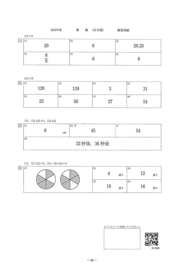 2025年度入試過去問題 B日程(算数 解答)(1ページ目)|関西大倉中学校の入試過去問
