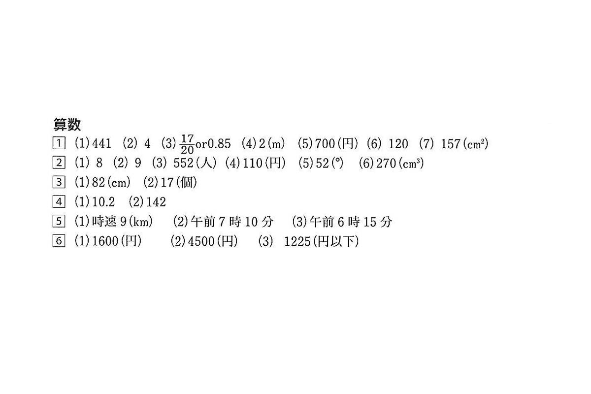 2024年度入試過去問題(算数 解答)(1ページ目)|大阪薫英女学院中学校の入試過去問