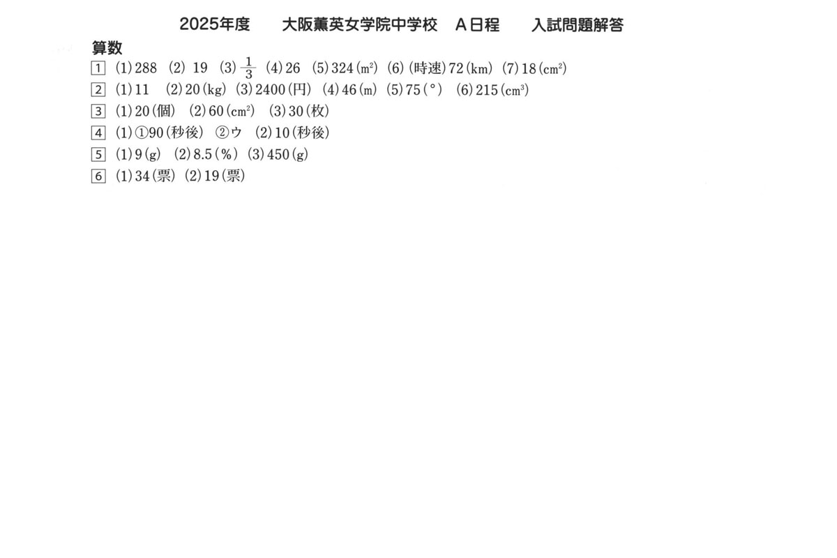 2025年度入試過去問題(算数 解答)(1ページ目)|大阪薫英女学院中学校の入試過去問