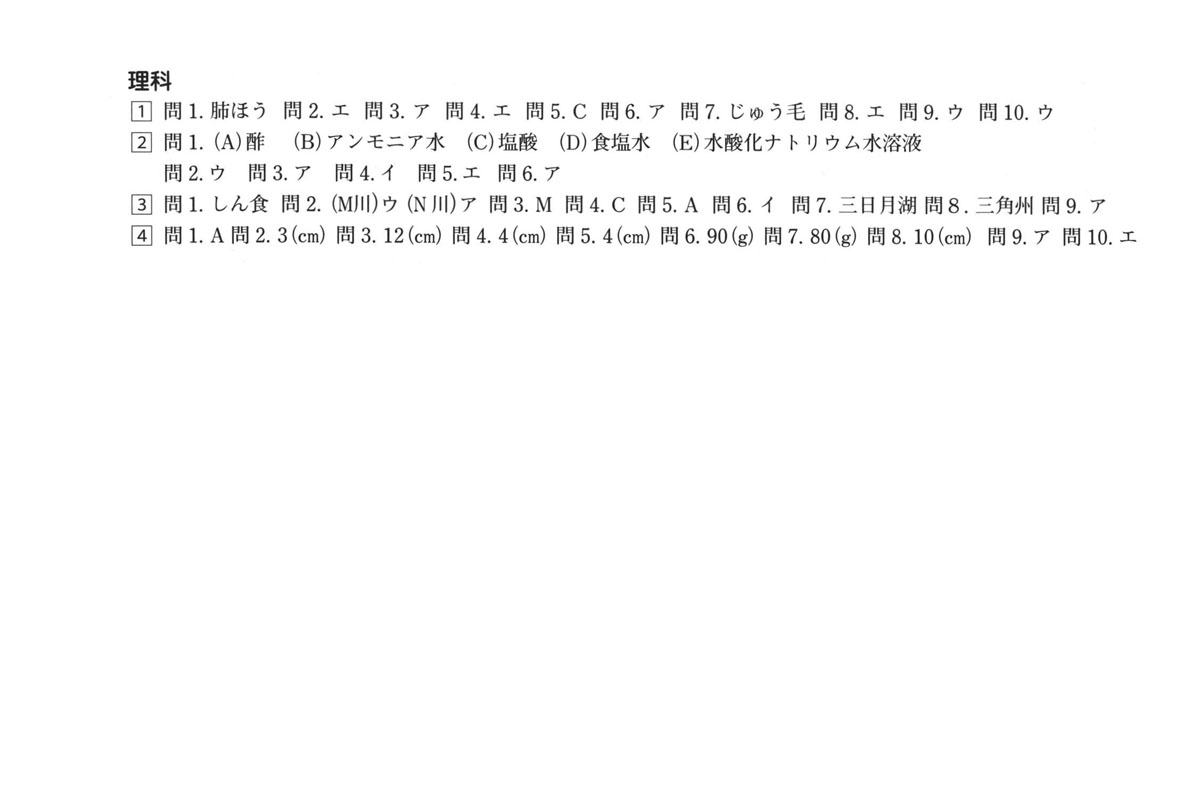 2025年度入試過去問題(理科 解答)(1ページ目)|大阪薫英女学院中学校の入試過去問