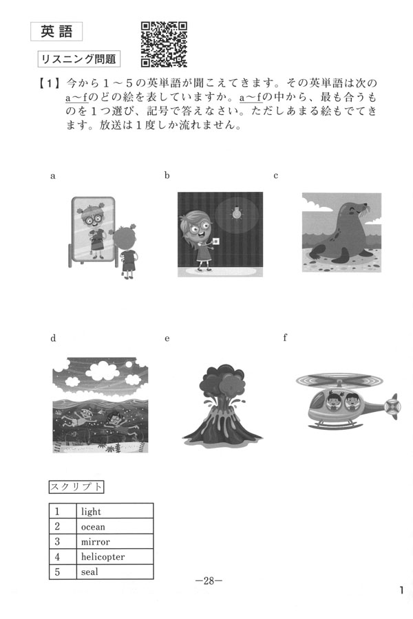 2025年度入試過去問題(英語 問題)(1ページ目)|大阪薫英女学院中学校の入試過去問