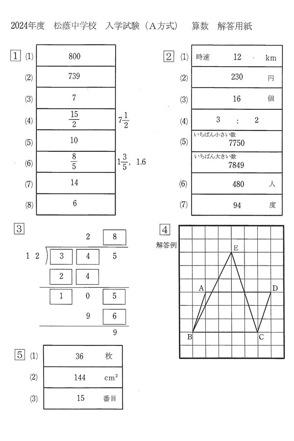 入試過去問(解答)(1ページ目)|松蔭中学校の入試過去問