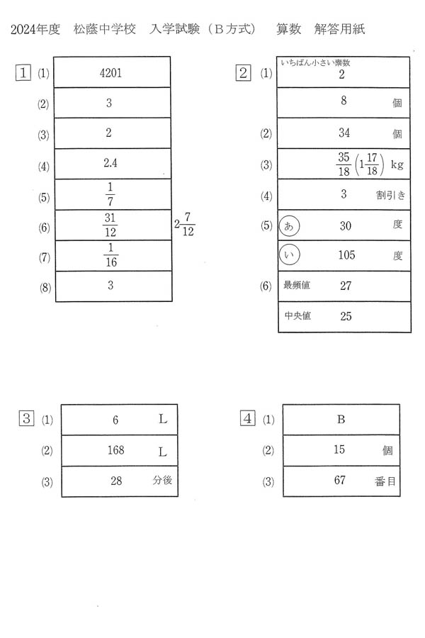 入試過去問(解答)(1ページ目)|松蔭中学校の入試過去問