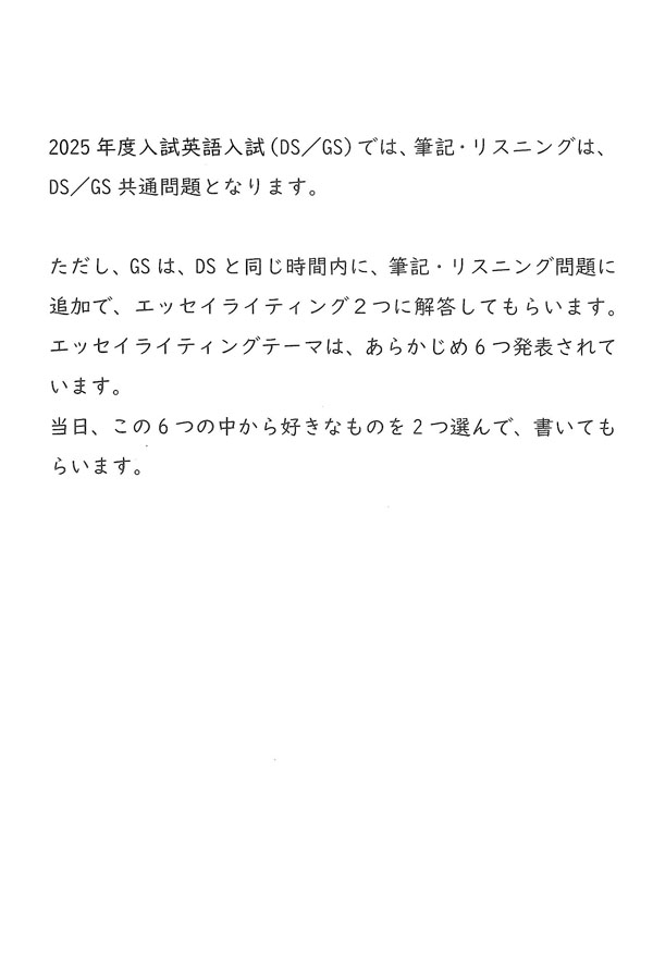 2025年度入試過去問題(DS/GS)(英語 問題)(1ページ目)|松蔭中学校の入試過去問