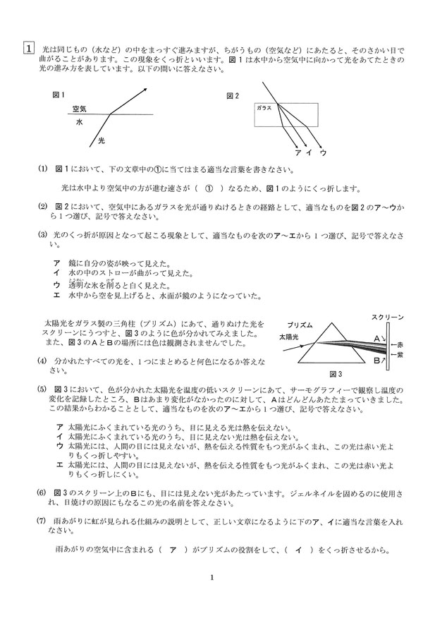 入試過去問(問題)(1ページ目)|神戸国際中学校の入試過去問
