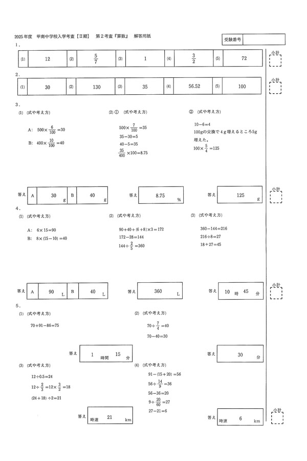 入試過去問(解答)(1ページ目)|甲南中学校の入試過去問