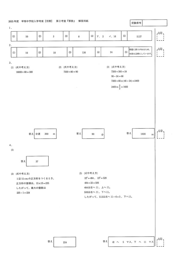 2025年度入試過去問題(III期)(算数 解答)(1ページ目)|甲南中学校の入試過去問