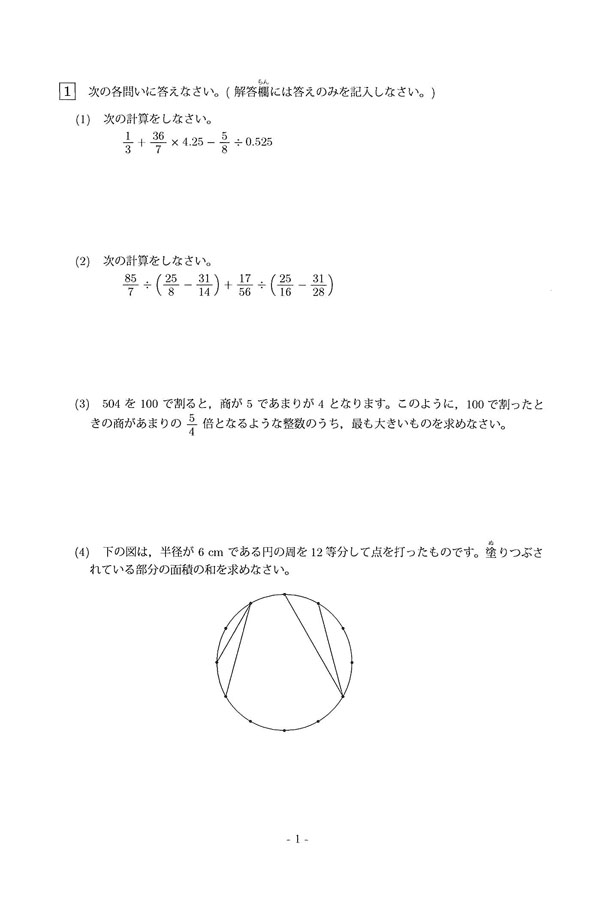 令和7年度入試過去問題(算数 問題)(1ページ目)|東大寺学園中学校の入試過去問