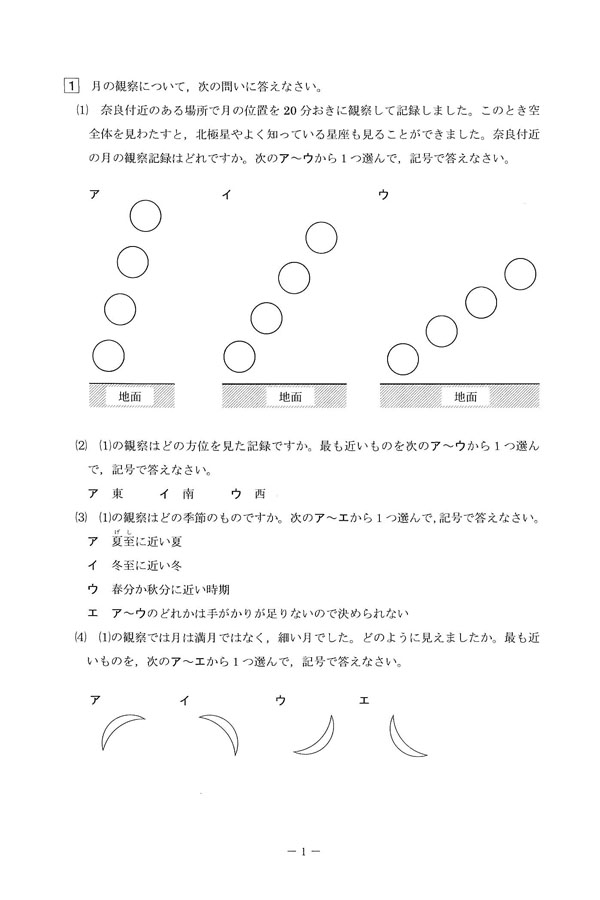 令和7年度入試過去問題(理科 問題)(1ページ目)|東大寺学園中学校の入試過去問