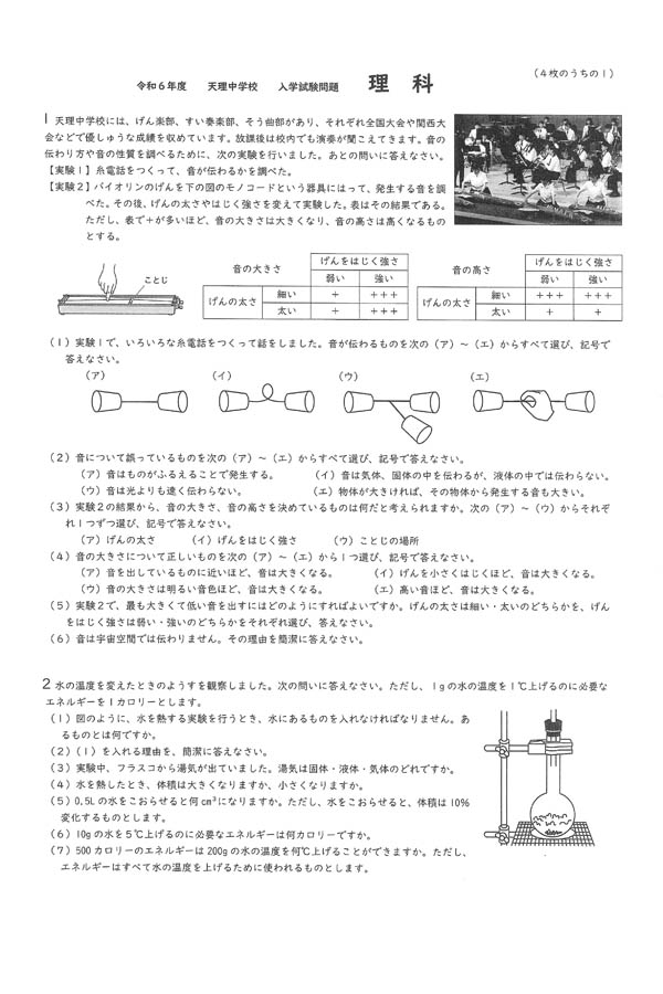 入試過去問(問題)(1ページ目)|天理中学校の入試過去問