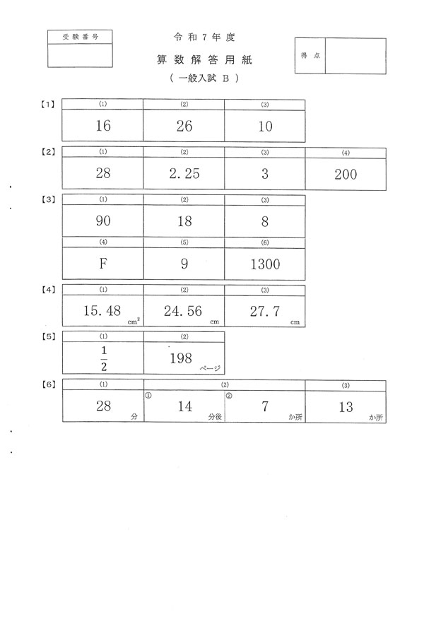 令和7年度入試過去問題(一般入試B)(算数 解答)(1ページ目)|智辯学園中学校の入試過去問