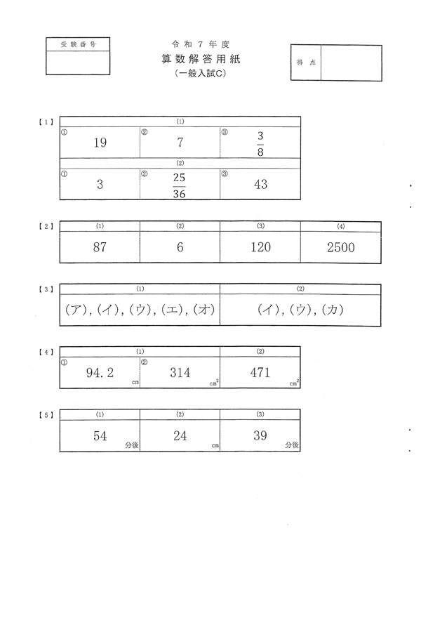 令和7年度入試過去問題(一般入試C)(算数 解答)(1ページ目)|智辯学園中学校の入試過去問