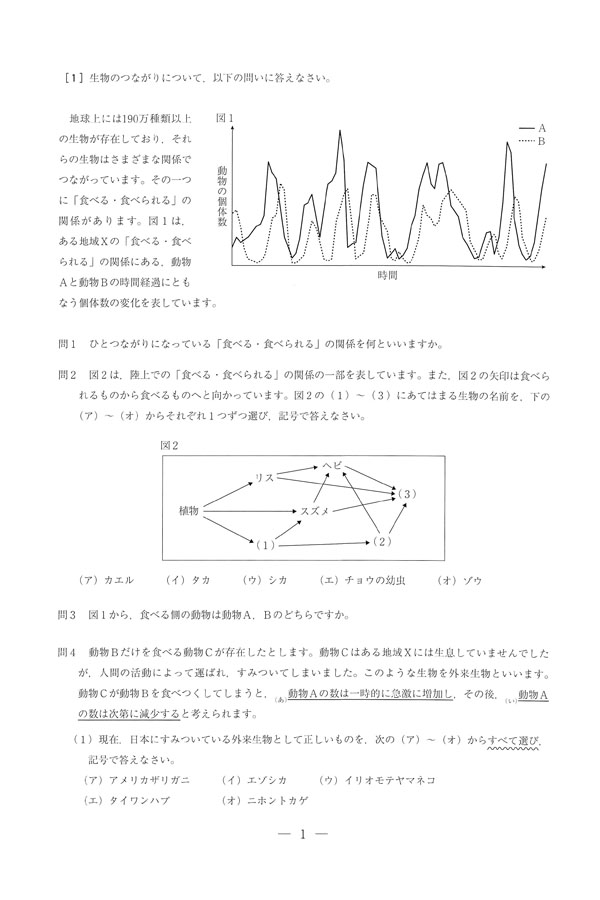 令和7年度入試過去問題(一般入試A)(理科 問題)(1ページ目)|智辯学園中学校の入試過去問