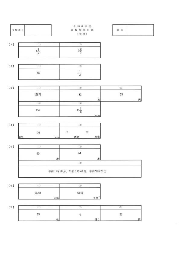 令和6年度入試過去問題 後期(算数 解答)(1ページ目)|智辯学園和歌山中学校の入試過去問