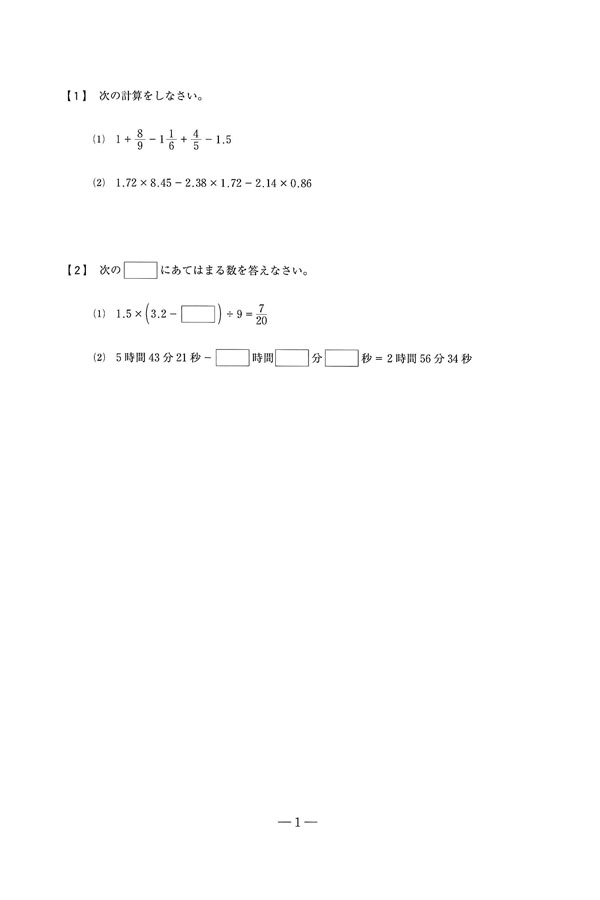 令和7年度入試過去問題(前期)(算数 問題)(1ページ目)|智辯学園和歌山中学校の入試過去問