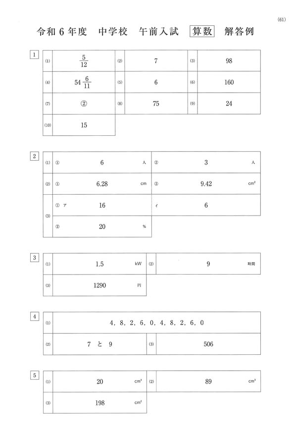 令和6年度入試過去問題 午前入試(算数 解答)(1ページ目)|近畿大学附属和歌山中学校の入試過去問
