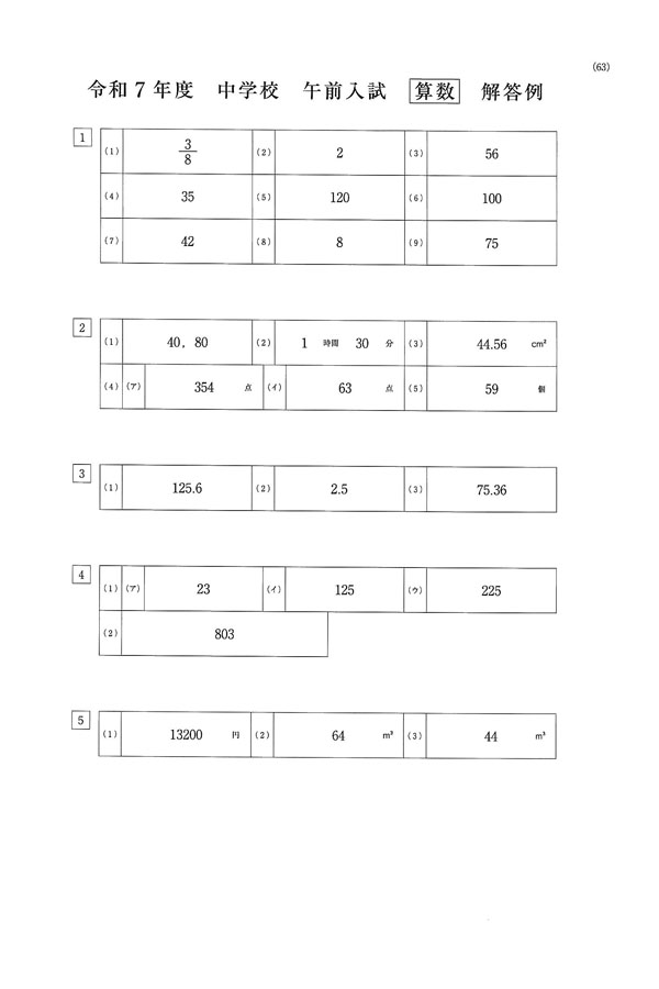 令和7年度入試過去問題(午前入試)(算数 解答)(1ページ目)|近畿大学附属和歌山中学校の入試過去問