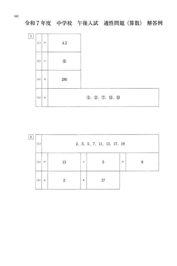 令和7年度入試過去問題(午後入試)(算数 解答)(1ページ目)|近畿大学附属和歌山中学校の入試過去問