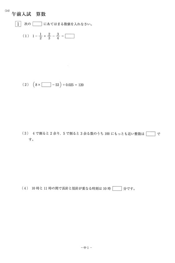 令和6年度入試過去問題 午前入試(算数 問題)(1ページ目)|近畿大学附属和歌山中学校の入試過去問