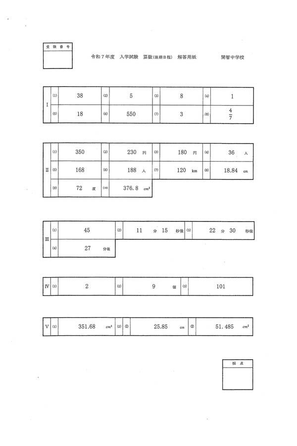 入試過去問(解答)(1ページ目)|開智中学校の入試過去問