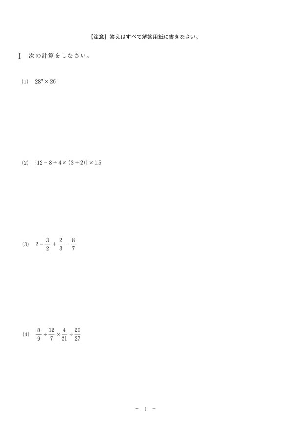 令和7年度入試過去問題(前期)(算数 問題)(1ページ目)|開智中学校の入試過去問