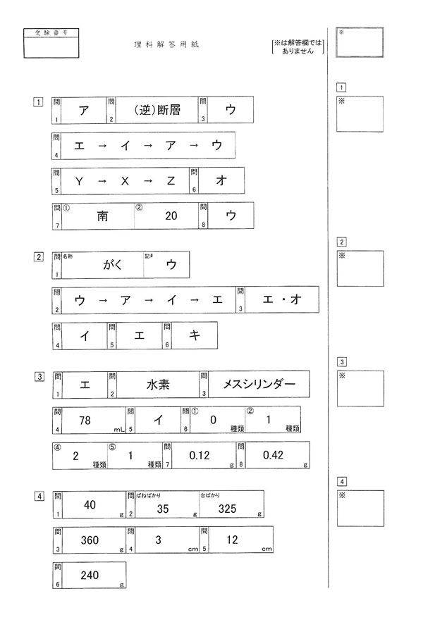 2025年度入試過去問題(理科 解答)(1ページ目)|上智福岡中学校の入試過去問