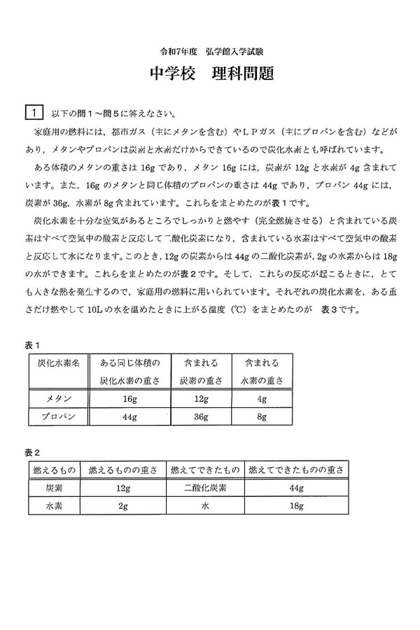 入試過去問(問題)(1ページ目)|弘学館中学校の入試過去問