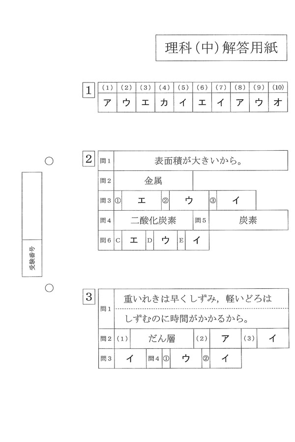 令和7年度入試過去問題(理科 解答)(1ページ目)|青雲中学校の入試過去問