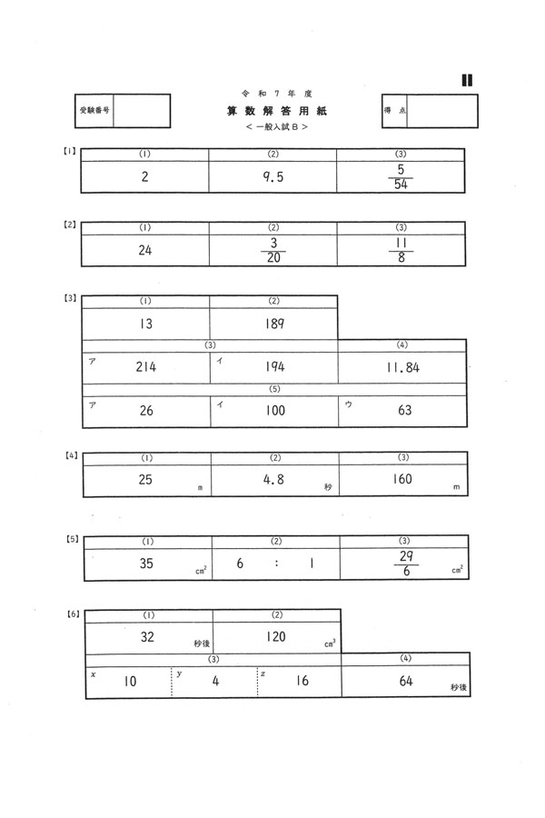 令和7年度入試過去問題(一般入試B)(算数 解答)(1ページ目)|智辯学園奈良カレッジ中学部の入試過去問