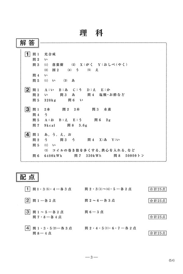 2024年度入試過去問題 A方式(理科 解答)(1ページ目)|桃山学院中学校の入試過去問
