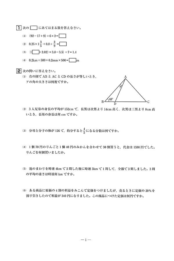 2025年度入試過去問題 C方式(算数 問題)(1ページ目)|桃山学院中学校の入試過去問