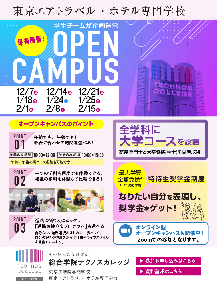 東京エアトラベル・ホテル専門学校のオープンキャンパス
