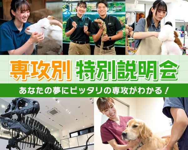 動物病院のお仕事体験 要予約 参加無料 2026 5/24 日 参加する 開催内容 友達・保護者OK ●パターンA【体験授業も受けてより動物業界を深く知りたい】11:30~ 集合・受付&自由校舎見学12:15~12:45 学校説明会12:50~13:20 専攻説明会13:30~14:30 お仕事体験(保護者会同時開催)14:40~15:00 個別相談会(希望者)※16:30までは自由校舎見学可能●パターンB【2回以上オープンキャンパスに参加されている方】13:10~13:20 受付13:30~14:30 お仕事体験14:40~15:00 個別相談会(希望者)※校舎見学や学校説明会、専攻説明会を すでに受けたことがある方はパターンBのお仕事体験から参加できます!※もう一度説明会を聞きたい! 私は来たことあるけど保護者の方は初めて!という方はぜひパターンA の予約も受け付けています。 写真 場所はこちら 開催場所 本校 住 所 東京都江戸川区西葛西6-29-9 地図を印刷 地図をスマホに送る 学校名 TCA東京ECO動物海洋専門学校 住所 東京都江戸川区西葛西6-29-9 電話 TEL.0120-545-556 オープンキャンパス参加